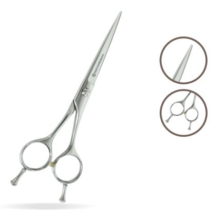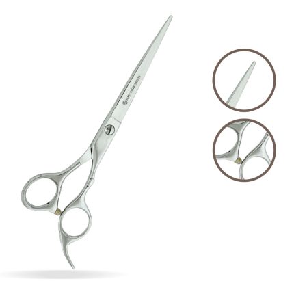 Achieve salon-quality precision with these high-performance stainless steel hair cutting scissors, designed for barbers, hairstylists, and personal use. With a sleek polished finish, razor-sharp convex blades, and an ergonomic design, these professional hair shears offer smooth and effortless cutting for all hair types. Crafted from high-quality stainless steel, these scissors are rust-resistant, ultra-durable, and lightweight, ensuring long-lasting performance. The offset handle provides a natural grip, reducing wrist strain and hand fatigue, making them ideal for extended use in salons or at home.Specifications: