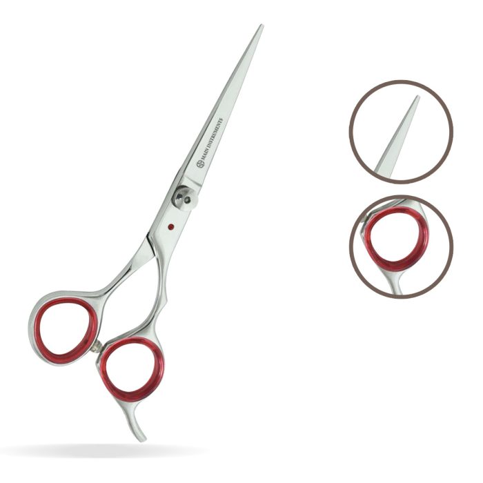 Achieve precise, effortless haircuts with these Professional Barber Scissors, designed for barbers, hairstylists, and salon professionals. Featuring an ergonomic handle with red ring accents, these shears provide a comfortable grip, enhanced control, and superior cutting precision. Made from premium stainless steel, these high-performance hair-cutting shears feature razor-sharp convex blades that glide effortlessly through all hair types. The adjustable tension screw allows customization for different cutting techniques, while the offset handle design reduces wrist strain, making them ideal for long hours of hairstyling.Specifications