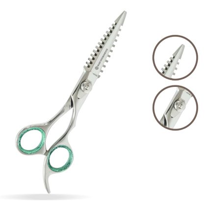Upgrade your hair styling game with these premium-quality texturizing hair cutting scissors, expertly crafted for barbers, hairstylists, and salon professionals. Designed for chunking, texturizing, and blending, these shears help create modern, layered, and voluminous hairstyles with ease. The precision-forged stainless steel blades ensure sharp, effortless cutting while maintaining durability and corrosion resistance. The ergonomic crane handle design provides superior comfort and control, reducing strain on the wrist, hand, and fingers, making them ideal for long styling sessions. With strategically spaced notches on the blade, these scissors allow for seamless thinning, removing bulk while preserving hair texture and movement.Specifications: