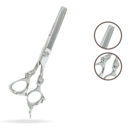 Upgrade your hairstyling tools with these Dragon-Engraved Professional Barber Scissors, crafted for barbers, hairstylists, and salon professionals. Featuring a stunning dragon handle design, these shears offer a stylish yet ergonomic grip, ensuring maximum comfort and control. Constructed from high-quality Japanese stainless steel, these razor-sharp convex blades provide precision cutting for all hair types. The adjustable tension screw allows effortless customization, making it ideal for different hair textures and cutting techniques. The offset ergonomic handle reduces wrist strain, allowing for extended use in barbershops, salons, or at home.Specifications