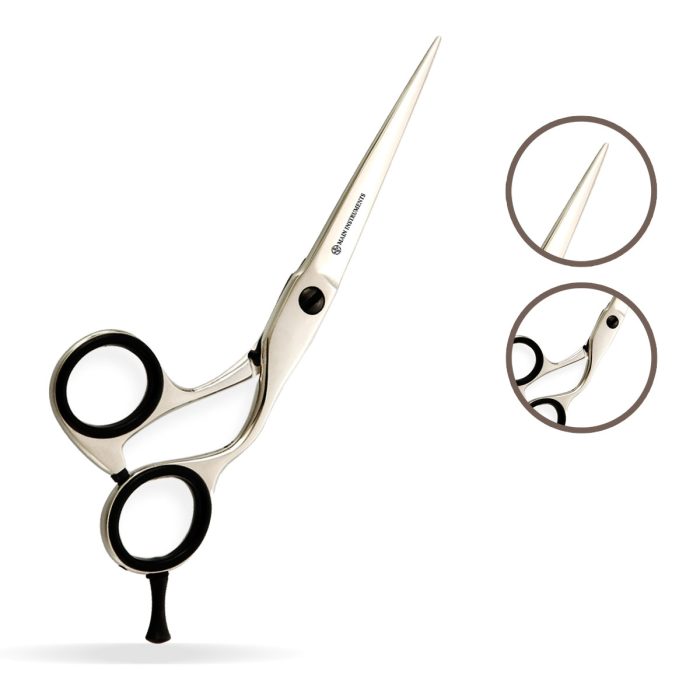 The razor-sharp convex blades ensure seamless, effortless, and precise cutting, while the sleek, polished finish with black ring grips adds a modern touch to your hairstyling toolkit. Whether you’re a professional stylist or a home user, these scissors guarantee a flawless cutting experience.