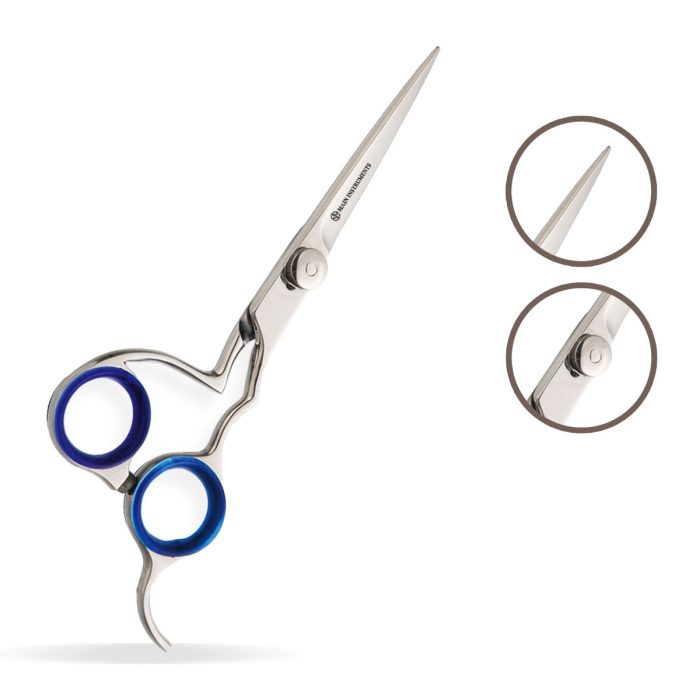 Achieve salon-quality precision with these professional-grade barber scissors, crafted from high-quality stainless steel for superior durability and sharpness. Designed for barbers, hairstylists, and salon professionals, these premium shears provide a smooth, effortless cutting experience with their razor-sharp convex edge blades. Featuring an ergonomic offset handle with a detachable finger rest, these hair scissors offer optimal comfort and reduced hand fatigue, making them perfect for extended use. The sleek silver finish with vibrant blue finger inserts adds a stylish touch while ensuring a comfortable grip.Specifications: