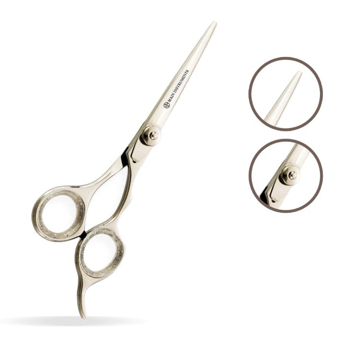 Achieve salon-quality precision with these high-performance stainless steel hair cutting scissors, designed for barbers, hairstylists, and personal use. With a sleek polished finish, razor-sharp convex blades, and an ergonomic design, these professional hair shears offer smooth and effortless cutting for all hair types. Crafted from high-quality stainless steel, these scissors are rust-resistant, ultra-durable, and lightweight, ensuring long-lasting performance. The offset handle provides a natural grip, reducing wrist strain and hand fatigue, making them ideal for extended use in salons or at home.Specifications: