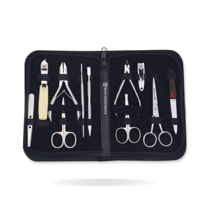 Achieve salon-quality grooming at home with this 13-piece professional manicure, pedicure, and hair cutting kit. Designed for both men and women, this all-in-one grooming set includes high-quality stainless steel beauty tools for precise nail and hair care. The set features razor-sharp hair cutting scissors, making it perfect for at-home hair trims and salon use. Encased in a sleek, black velvet zippered case, this compact, portable, and travel-friendly beauty kit is ideal for maintaining your nails, cuticles, and hair effortlessly.