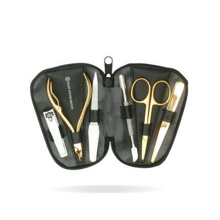 Achieve a flawless manicure and pedicure with this premium 7-piece beauty kit, designed for both professional salon use and at-home grooming. Crafted from high-quality stainless steel with a gold-plated finish, this stylish set offers durability, precision, and elegance. Encased in a sleek, portable leather pouch, this all-in-one grooming kit is perfect for maintaining clean, healthy nails anytime, anywhere.