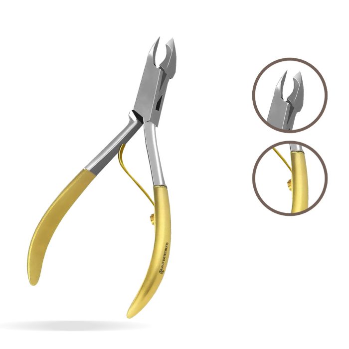 This professional-grade toenail nipper is designed for thick, ingrown, and fungal toenails. Made from high-quality stainless steel, it features sharp, concave blades that provide a precise, smooth, and effortless trim. The gold-plated ergonomic handle ensures a comfortable, non-slip grip, while the built-in locking mechanism enhances safety and secure storage. Ideal for podiatrists, nail salons, and personal foot care, this heavy-duty nail cutter is a must-have tool for maintaining healthy, well-groomed nails.