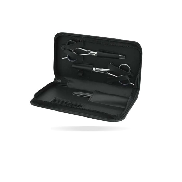 This premium hairdressing scissor kit is designed for barbers, hairstylists, and personal grooming enthusiasts. Encased in a sleek, zippered storage pouch, it includes high-quality stainless steel scissors and essential styling tools, ensuring a precise and effortless haircutting experience. The portable and durable design makes it perfect for salon professionals, home use, and travel.