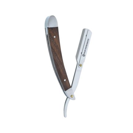 This classic straight razor features a sleek, ergonomic wooden handle with a curved grip for enhanced comfort. The stainless steel blade holder is designed with a foldable mechanism, ensuring safe storage and easy blade replacement. Its balanced weight distribution provides superior control, making it the best straight razor for barbers and wet shaving enthusiasts. The traditional design combined with modern precision makes it an essential men’s grooming tool for achieving a clean, sharp, and professional shave.
